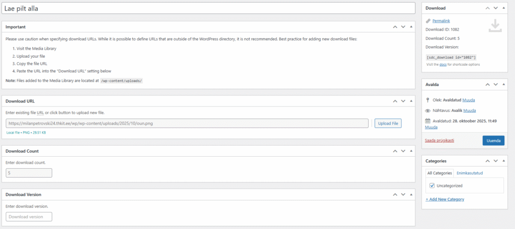 Kasutasin Simple Download Counter pluginat, mis lisab lihtsa lühikoodi “sdc_download id=…”