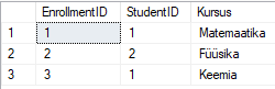 Veerg StudentID on võõrasvõti (FK), mis viitab tabeli Student primaarvõtmele.